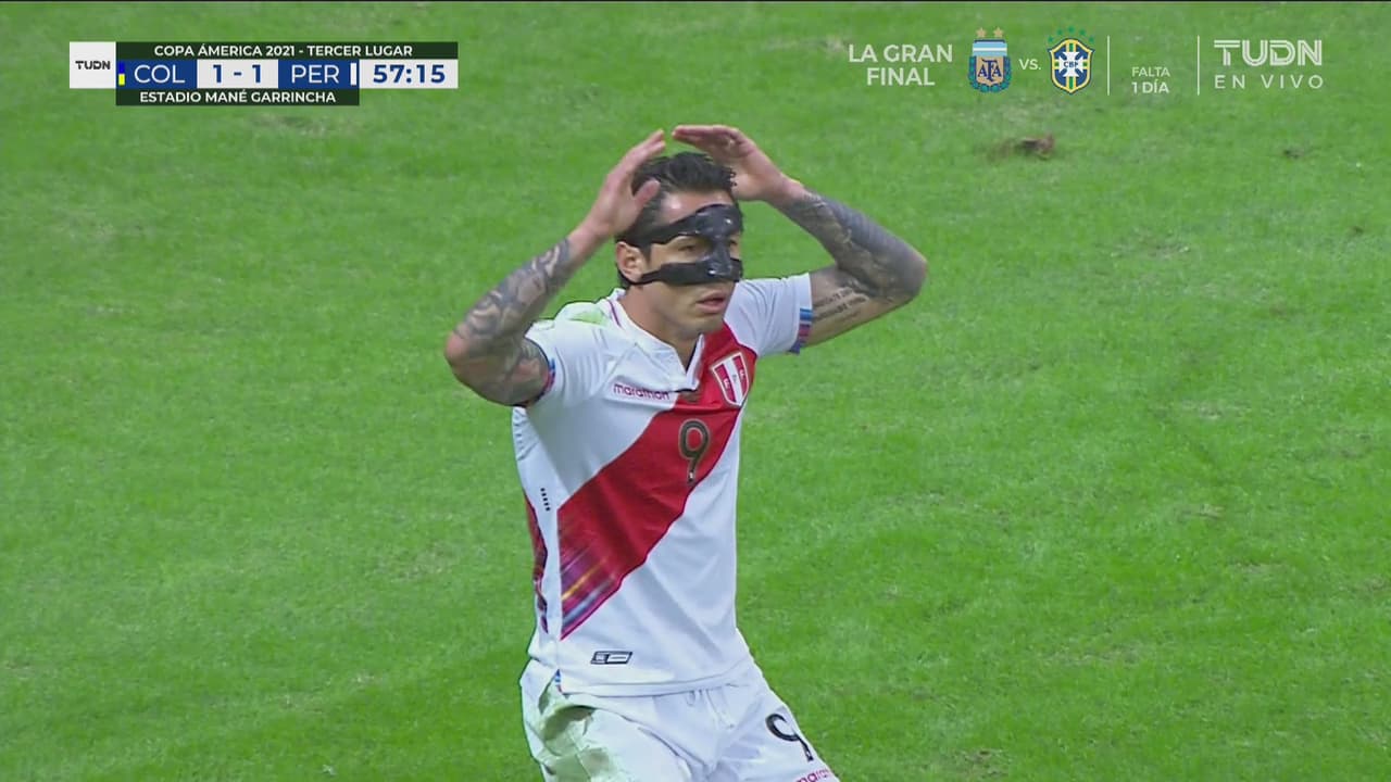 Gianluca entra al área de Colombia y suelta un zurdazo para que el balón pegue en el horizontal y salga al 58'.