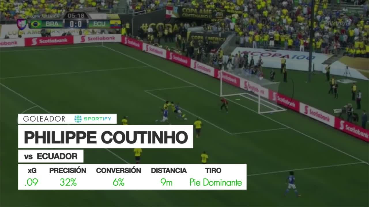 Las estadísticas del remate que Coutinho no logro convertir para Brasil.