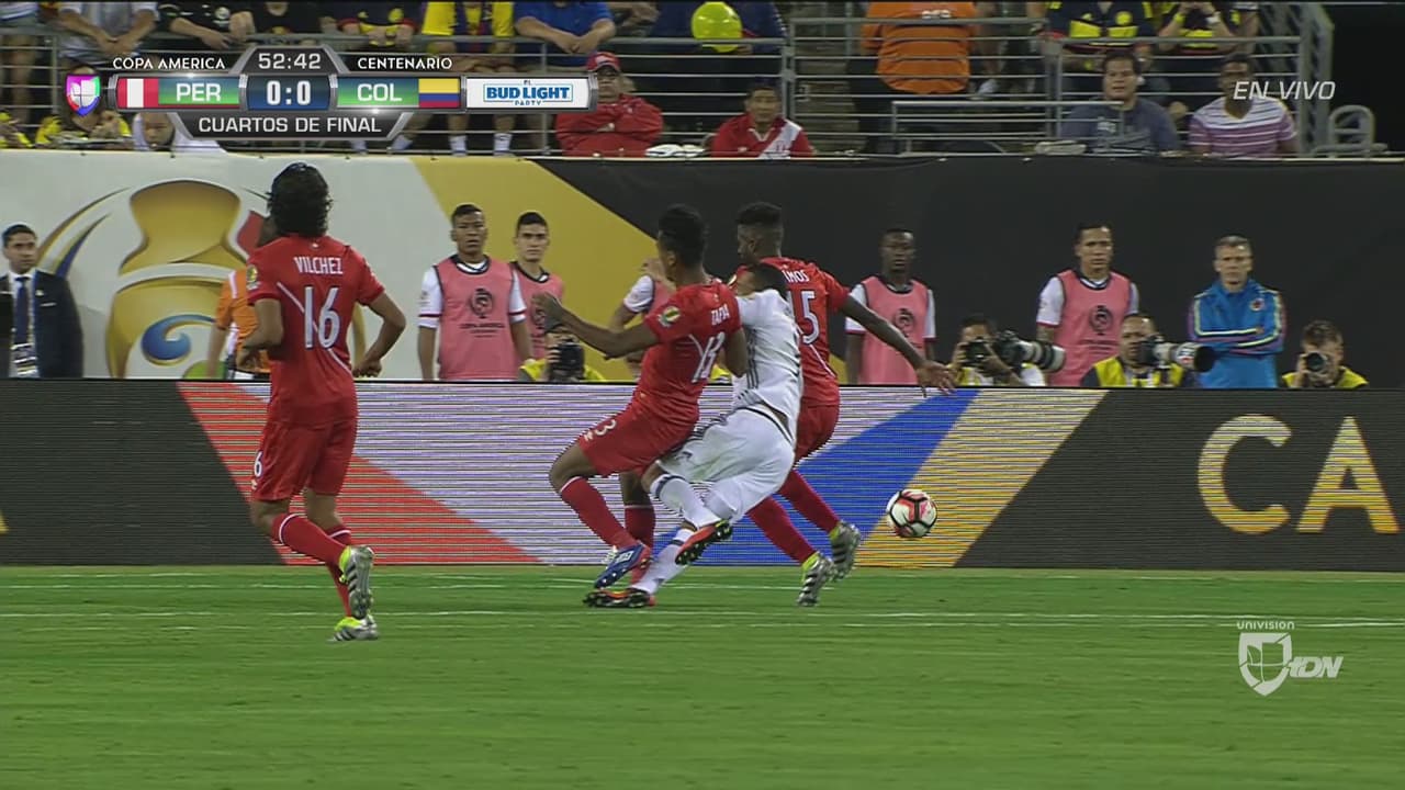 Polémica en el área de Perú.Cae Bacca pero el árbitro no pita