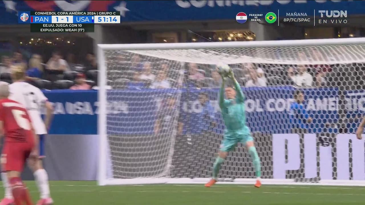 Derechazo de larga distancia por parte de Edgardo al que respondió con buena atajada Ethan Horvath.