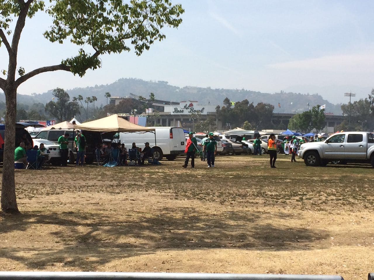 8:30 pm ET: Como se esperaba es abrumadora la mayoría mexicana en el Rose Bowl, la gente está con todo en el ambiente afuera del estadio.