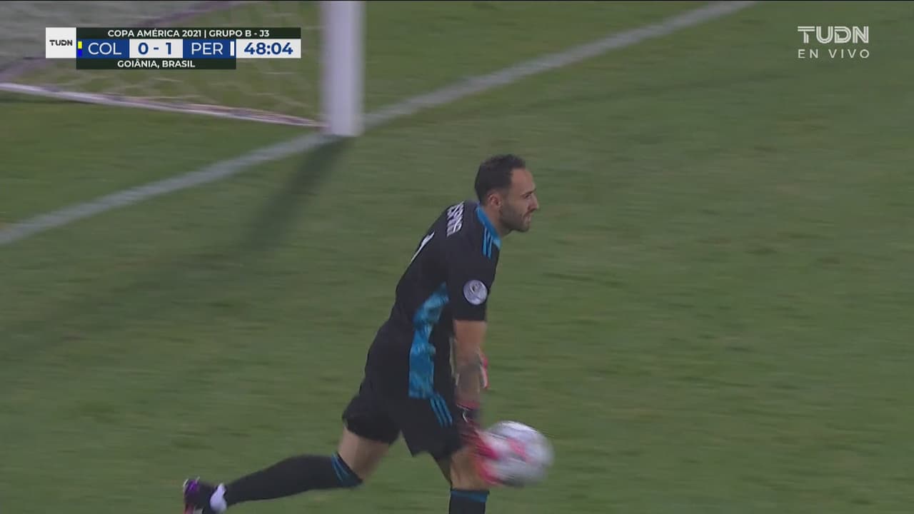 El delantero de Perú sacó de repente el remate desde larga distancia ante el portero de Colombia.