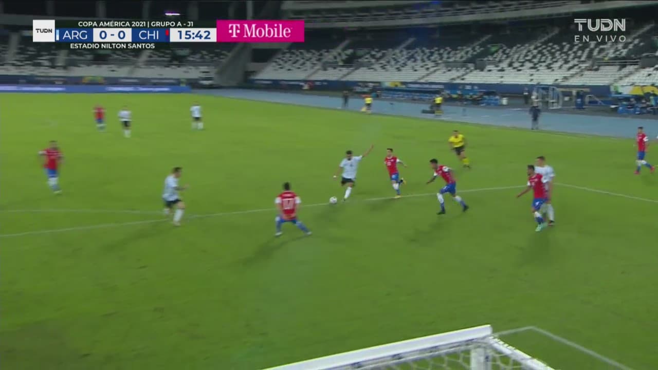 Giovani puso un servicio preciso y Martínez mandó su remate por encima de la portería al minuto 11.