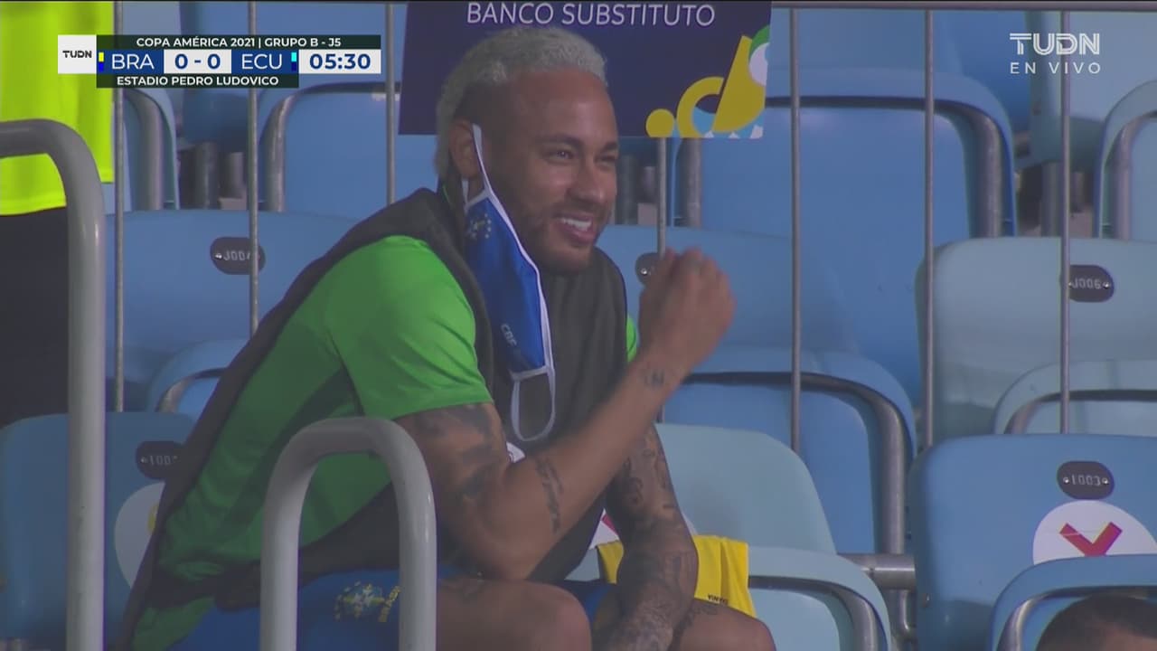 El astro de Brasil no fue incluido en el cuadro inicial ante Ecuador y mostró que se la pasa bien.