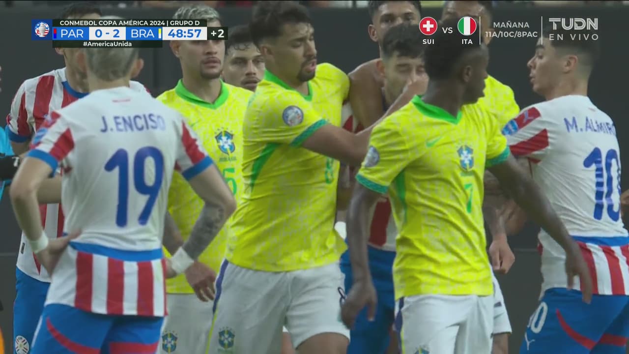 Por un empujón sobre Paquetá, empezaron a empujarse entre reclamos, que derivó en tarjetas amarillas.