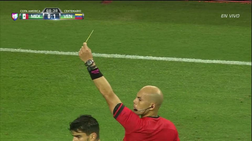 Tarjeta amarilla. El árbitro amonesta a Adalberto Peñaranda Maestre de Venezuela on June 13, 2016