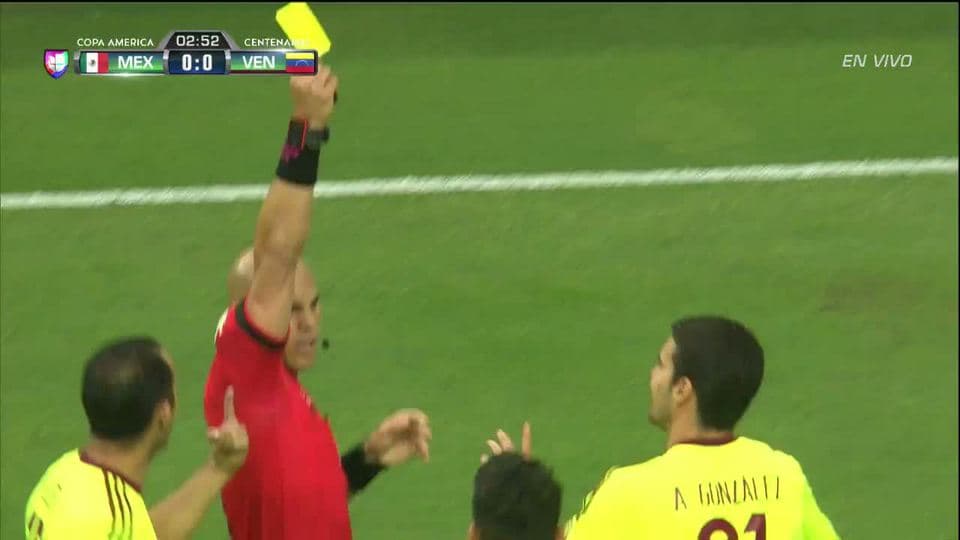 Tarjeta amarilla. El árbitro amonesta a Alexander David González Síbulo de Venezuela on June 13, 2016
