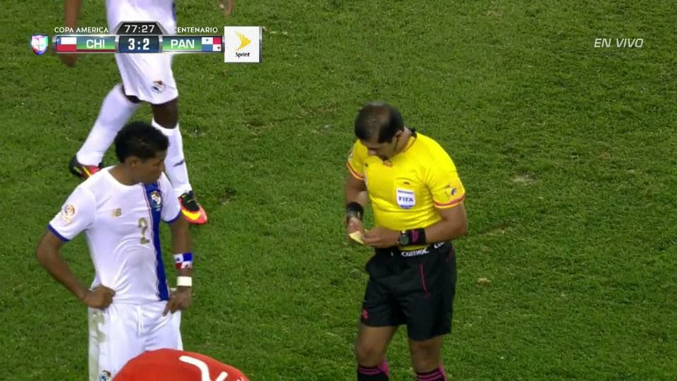 Tarjeta amarilla. El árbitro amonesta a Amílcar Henríquez Espinoza de Panamá