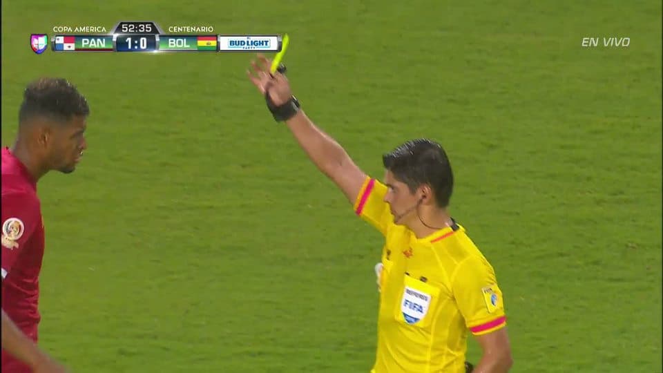 Tarjeta amarilla. El árbitro amonesta a Aníbal Casis Godoy Lemus de Panamá