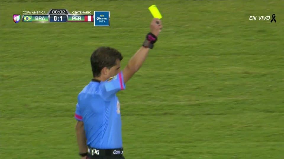 Tarjeta amarilla. El árbitro amonesta a Daniel Alves da Silva de Brasil on June 12, 2016