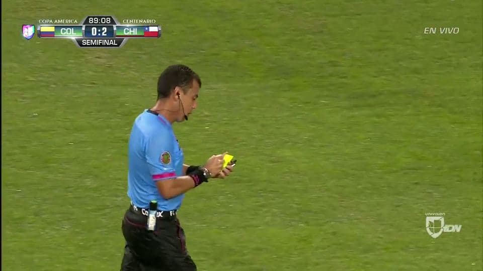Tarjeta amarilla. El árbitro amonesta a James David Rodríguez Rubio de Colombia on June 22, 2016