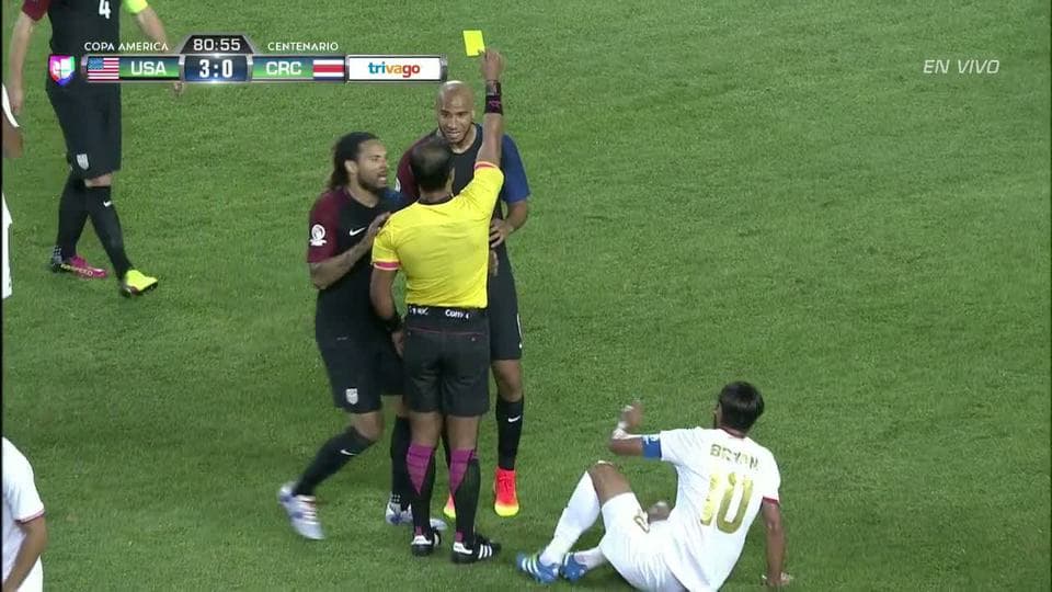 Tarjeta amarilla. El árbitro amonesta a John Brooks de Estados Unidos