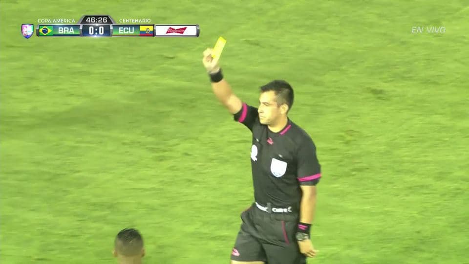 Tarjeta amarilla. El árbitro amonesta a Juan Carlos Paredes Reasco de Ecuador on June 4, 2016