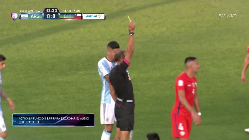 Tarjeta amarilla. El árbitro amonesta a Mauricio Aníbal Isla Isla de Chile on June 6, 2016