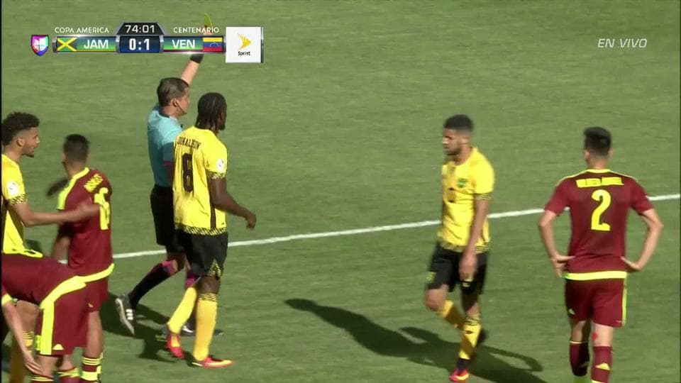 Tarjeta amarilla. El árbitro amonesta a Oswaldo Augusto Vizcarrondo Araujo de Venezuela on June 5, 2016