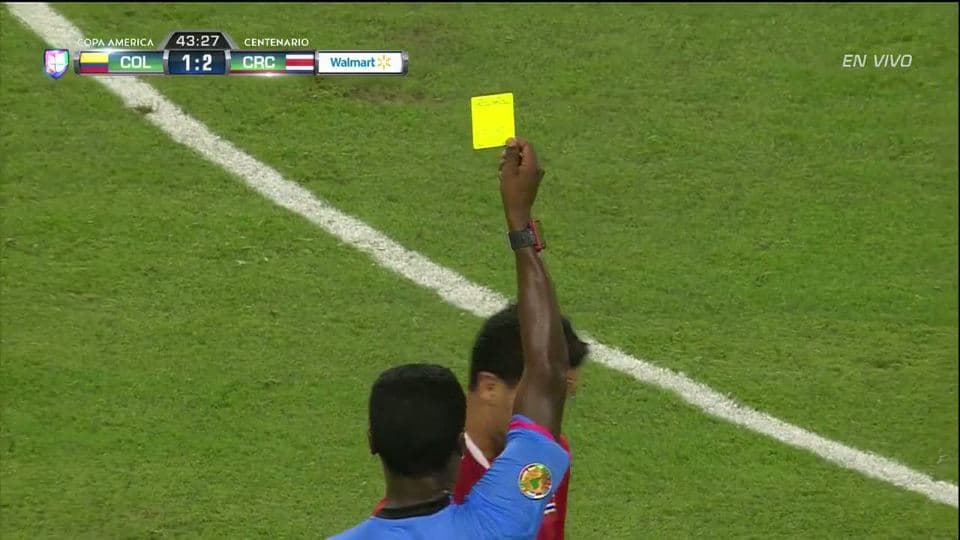 Tarjeta amarilla. El árbitro amonesta a Randall Azofeifa Corrales de Costa Rica