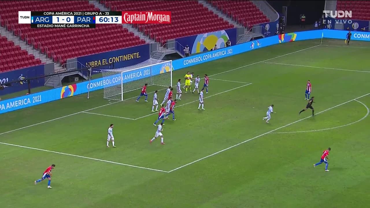 Tiro atajado Por arriba en el centro del arco. Ángel Romero (Paraguay) Disparo con la derecha desde muy lejos por la izquierda y en posición complicada.