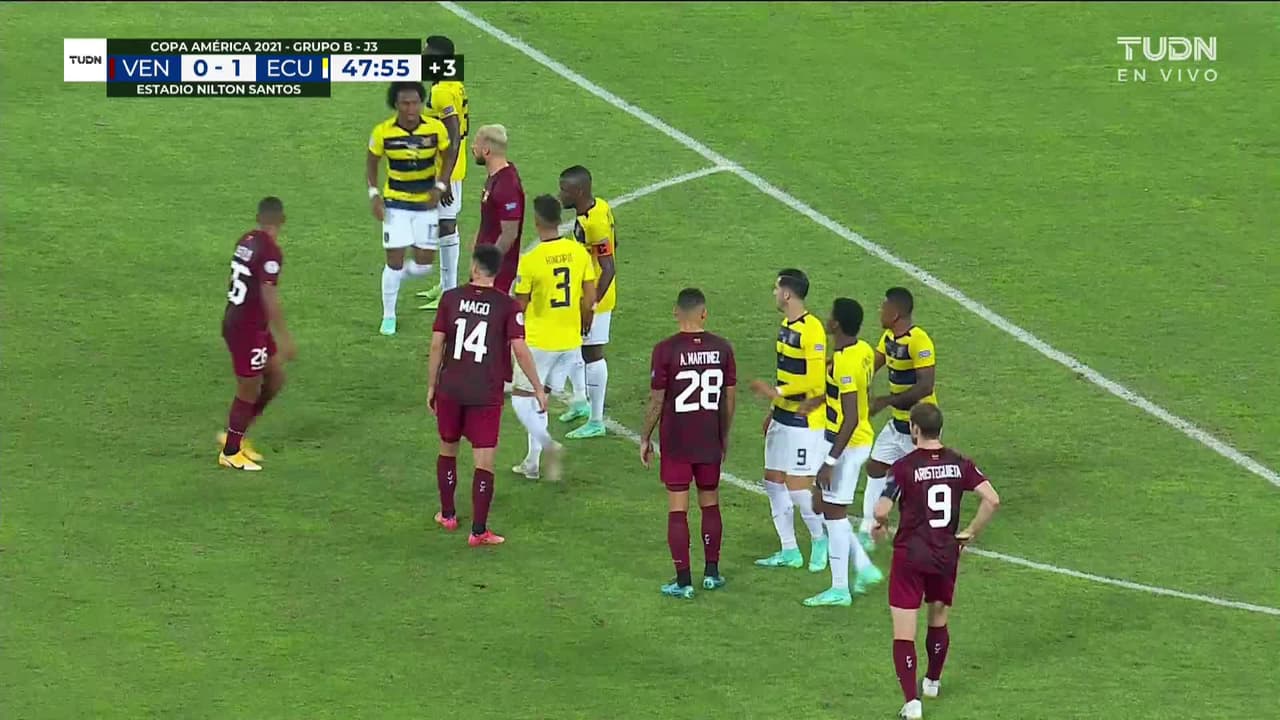 Tiro atajado junto al lado derecho de la portería. Edson Castillo (Venezuela) disparo de cabeza desde fuera del área. Asistencia de Cristian Cásseres Jr pase largo.