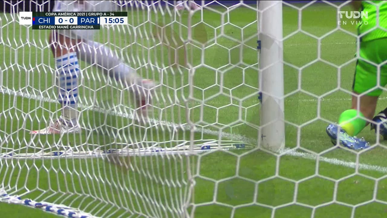 Tiro atajado junto al lado derecho de la portería. Mathias Villasanti (Paraguay) Disparo con la derecha sin ángulo desde la derecha. Asistencia de Gustavo Gómez.