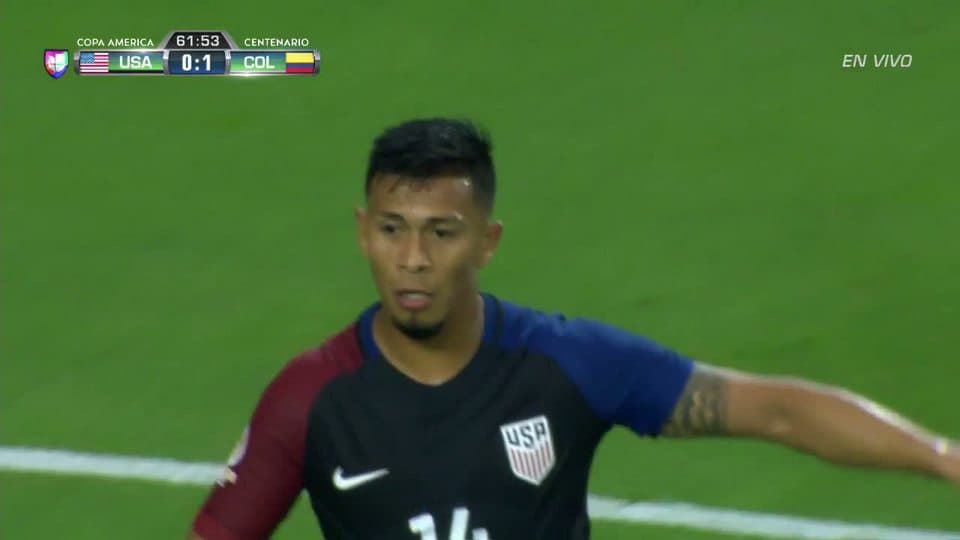 Uyy!! Casi gol. Bobby Wood patea y da en el arco on June 25, 2016