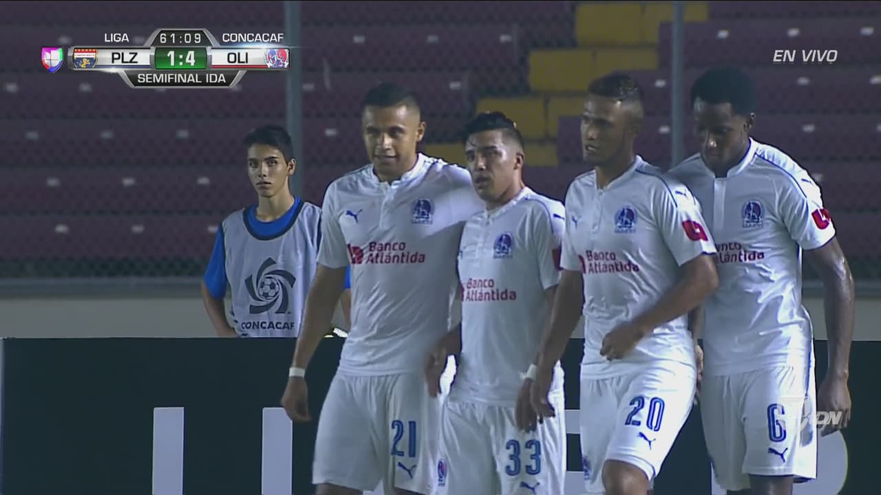 Con remate de pierna derecha que se desvía en un defensor y va a parar al fondo de la red, el delantero hondureño del Olimpia decreta el 4-1.