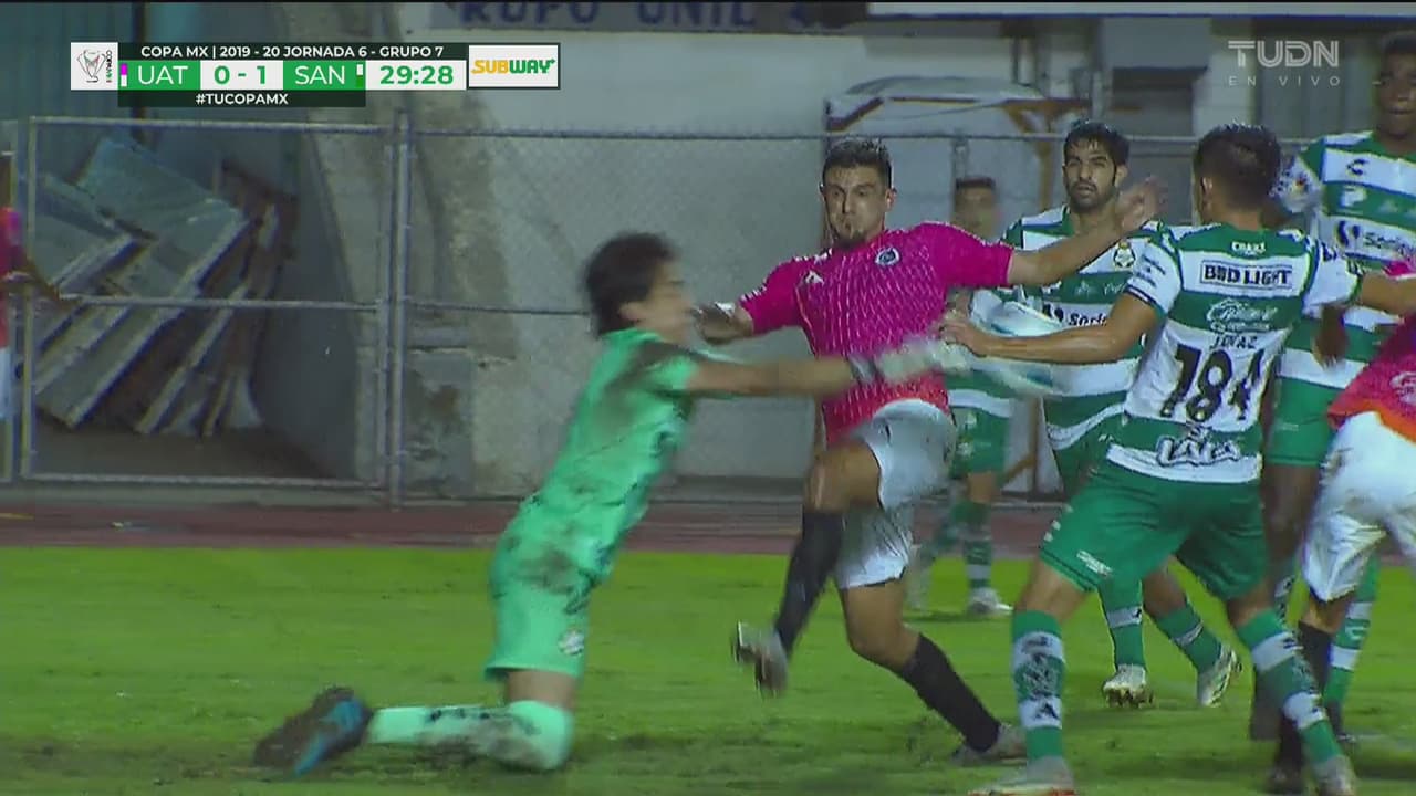 El portero de Santos expuso su cuerpo con un manotazo en un centre a favor de Correcaminos.