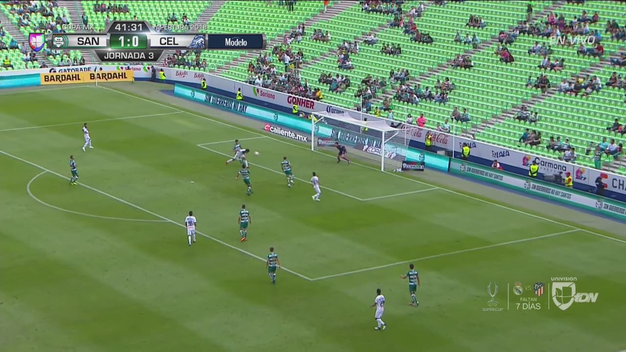 Reyna remató de cabeza dentro del área chica y el cancerbero ‘verdiblanco’ salva con una atajada de grandes reflejos.