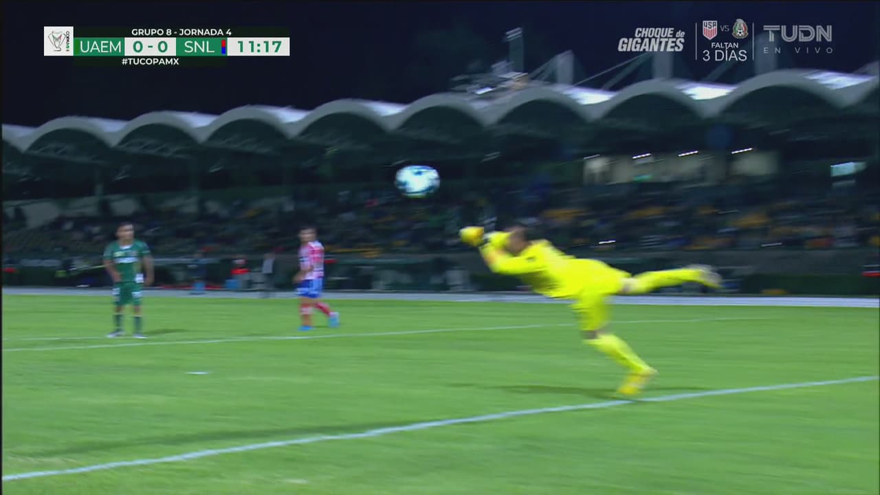 Diego Pineda remata de media distancia y vuela Alejandro Vences para enviar al tiro de esquina.