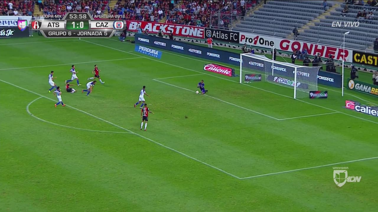 El portero de la Máquina recostó de gran forma para rechazar un disparo de fuera del área y luego la defensa alejó el peligro.