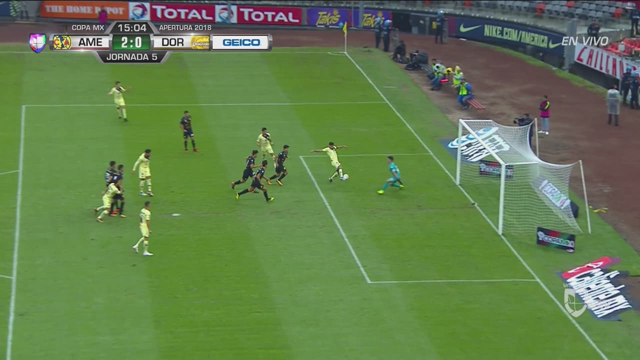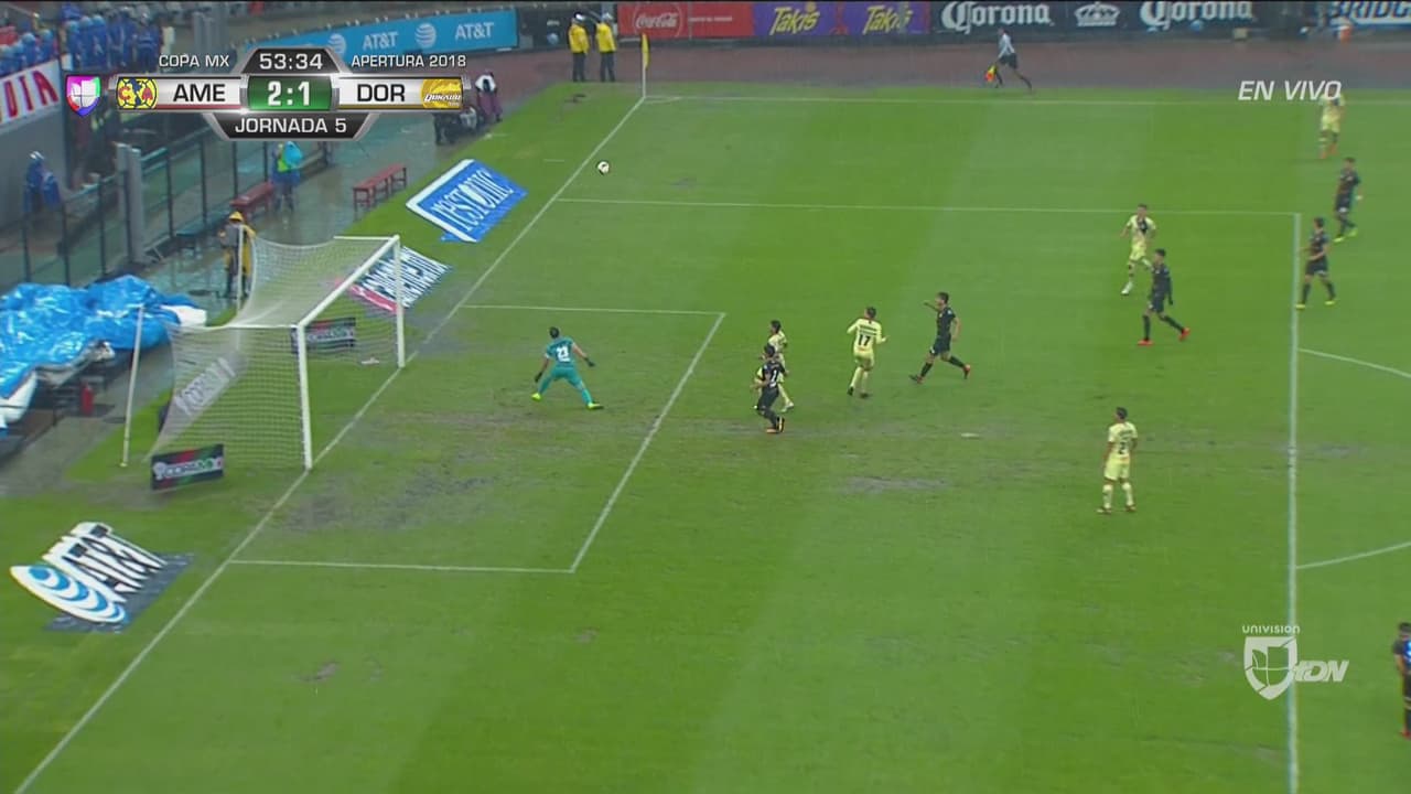 El segundo gol cayó casi de inmediato levantando la sospecha de una goleada por parte de las Águilas. En una pelota desde la derecha, Bruno Valdez conectó un centro tras una deficiente marca de Dorados para dejar el 2-0 en el marcador.