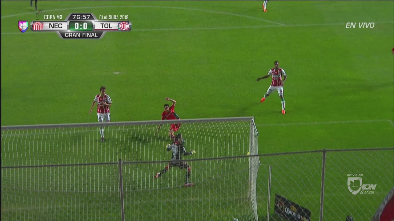 El volante de los Diablos Rojos tenía todo para empujar la pelota y abrir el marcador pero no alcanzó a conectar la pelota.