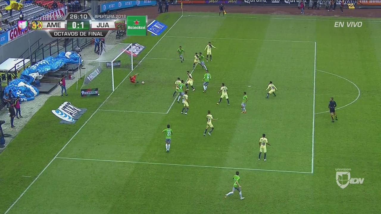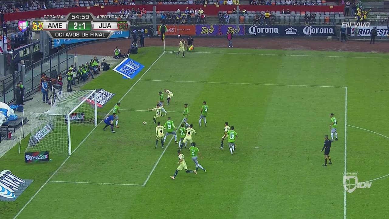 América tardó un poco en reaccionar e incluso Juárez estuvo a punto de marcar el segundo, cuando Agustín Marchesín sacó de la raya y a ras de pasto un disparo de Elson Dias en un tiro de esquina.