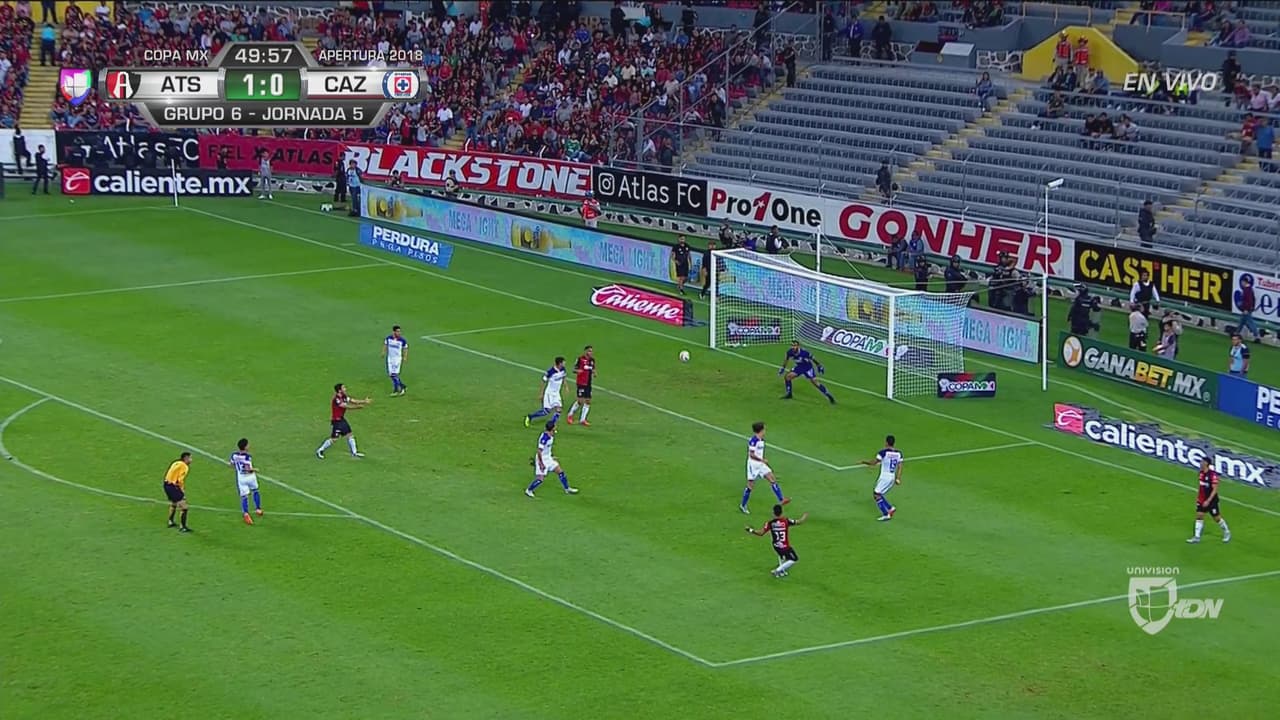 El joven jugador de Atlas intentó la anotación de lujo, pero su disparo le salió desviado por muy poco. Los Zorros se acercan al segundo gol.