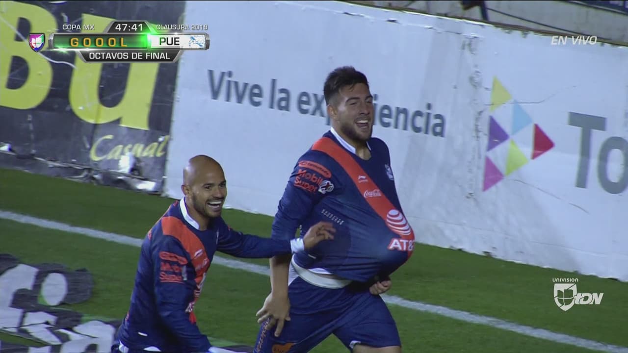 Portente y certero cabezazo del canadiense que ya le dio la ventaja al Puebla.