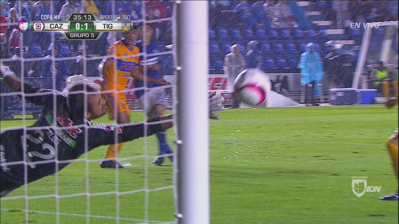 Cruz Azul apunto de igualar el marcador, pero la pelota roza el poste