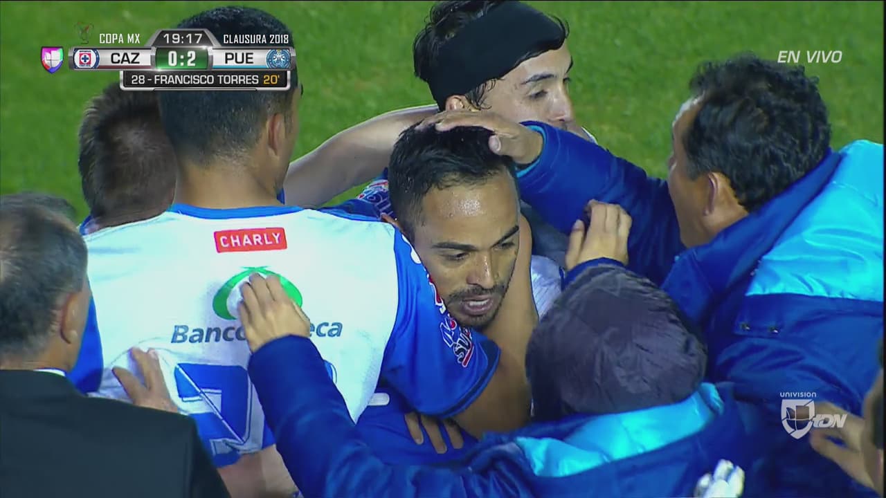 ¡Doblete de Francisco Torres en dos minutos y Puebla vence 2-0 a Cruz Azul!