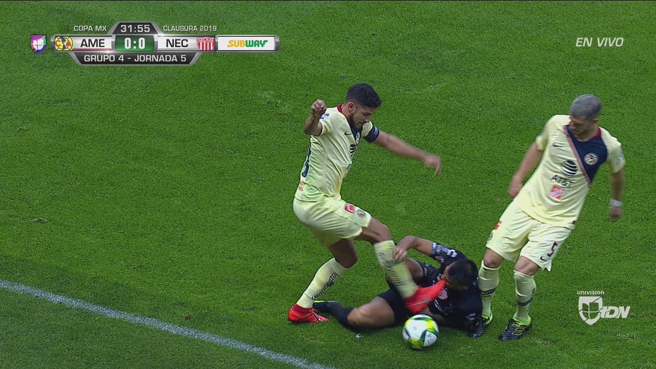 En el suelo, Nicolás Contreras intentó ir por el balón y terminó con una patada en el rostro de Bruno Valdez.