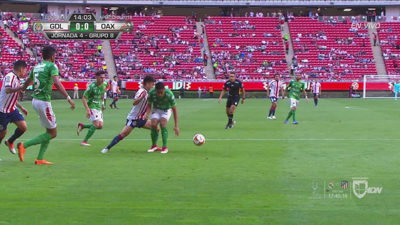 El volante del Rebaño entró a la zona de definición pero se topó con un defensa de Alebrijes que le impidió seguir haciendo daño.