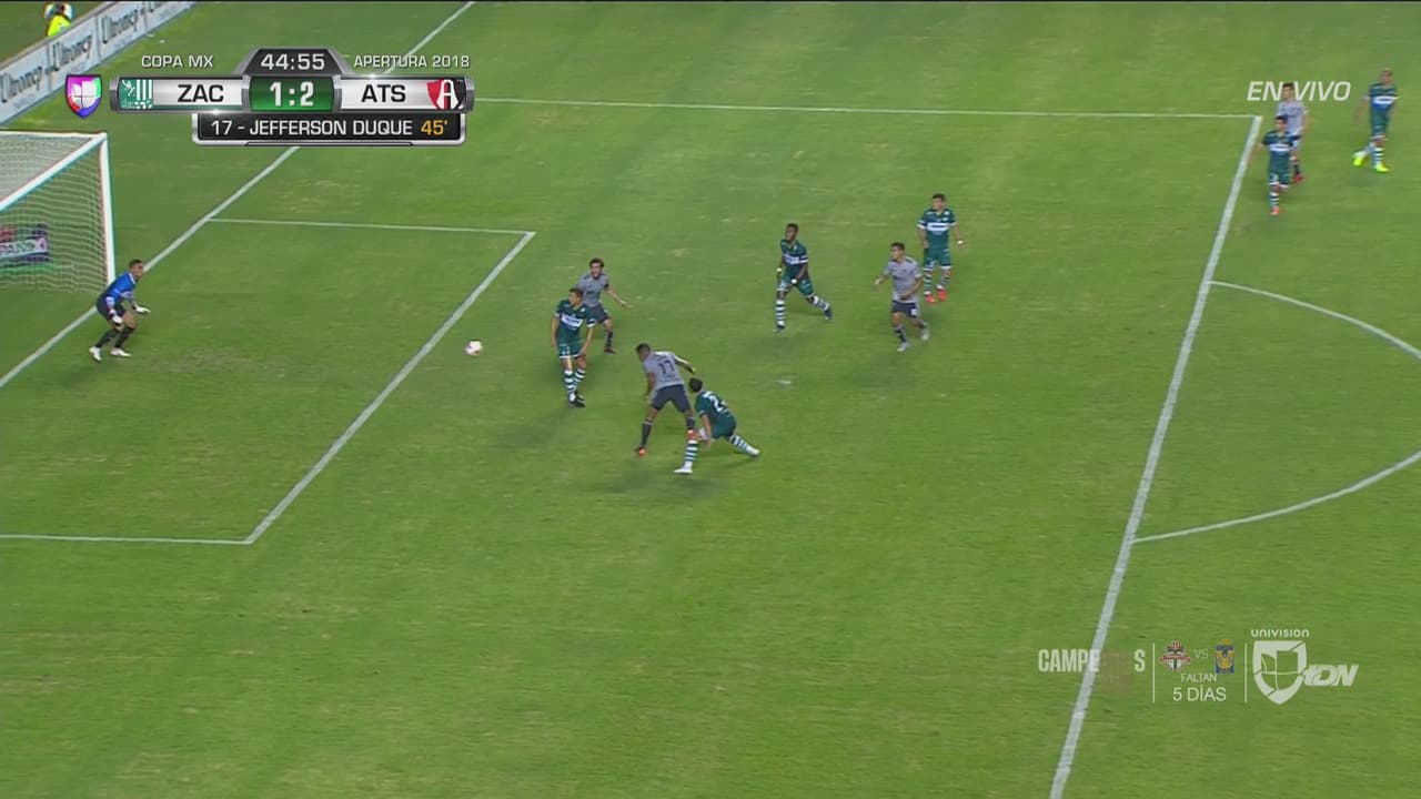 Centro preciso de Garnica, a la cabeza de Duque, que libre de marca y con clase la coloca en el fondo de la red.