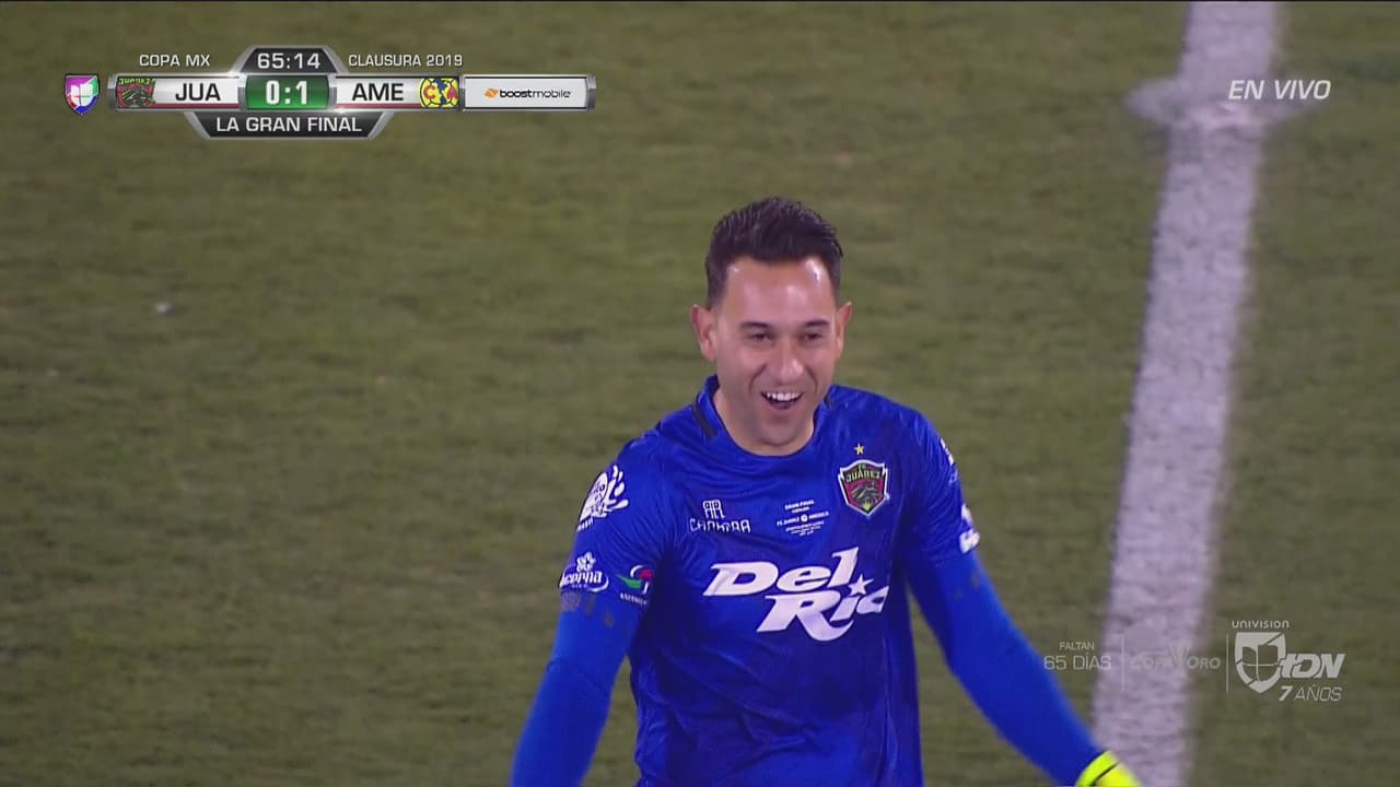 Soberbio Emmanuel Aguilera sacó del ángulo un tremendo disparo del portero de Juárez.