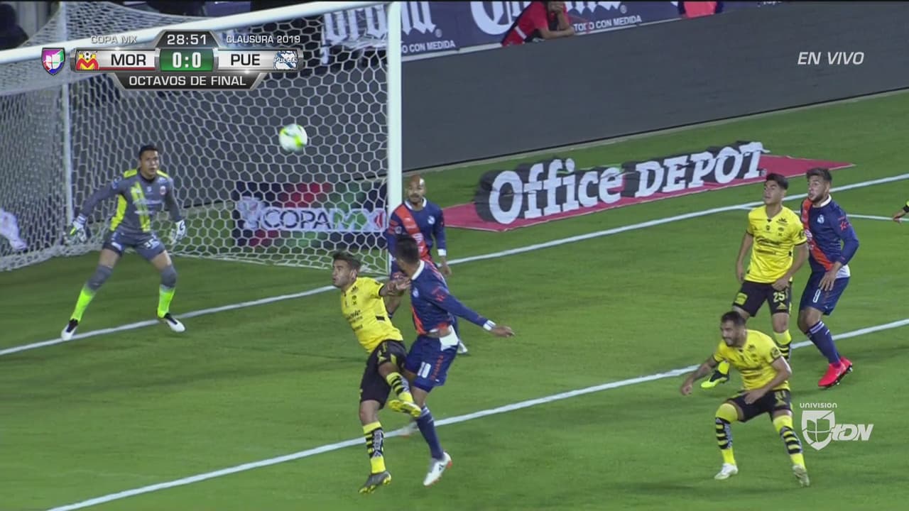 El Puebla ya tocó la puerta de Monarcas con un difícil testarazo.