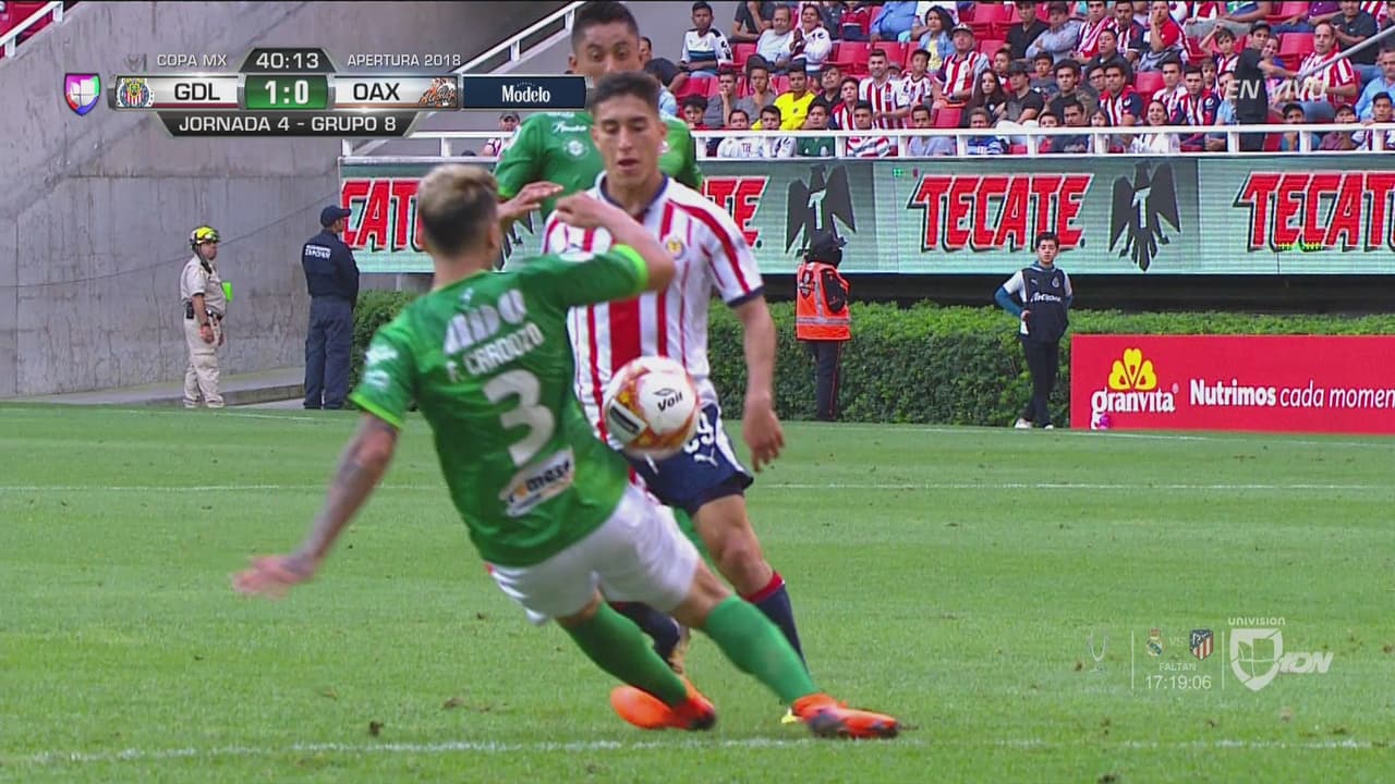 El goleador de Chivas en la Copa MX estaba haciendo una buena jugada desde medio campo que terminó con tiro libre por la falta del central sobre Zendejas.