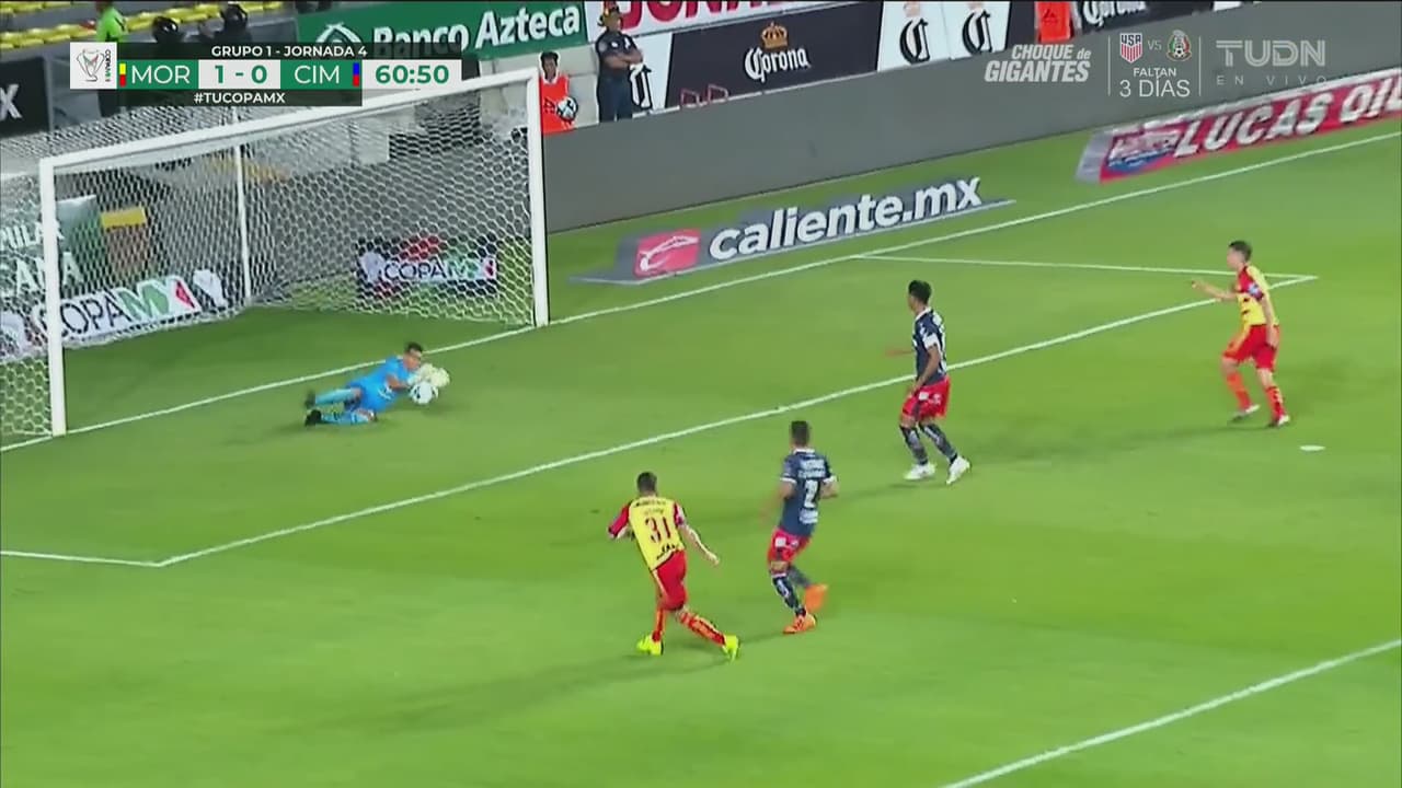 Gastón Lezcano la prende de aire y en el fondo detiene bien el arquero de Cimarrones.