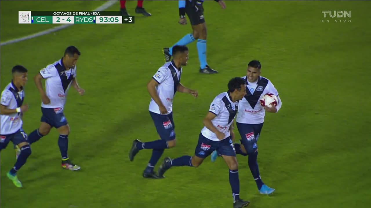 El central del Celaya se levanta en el área y con tremendo testarazo vence al portero de Rayados.