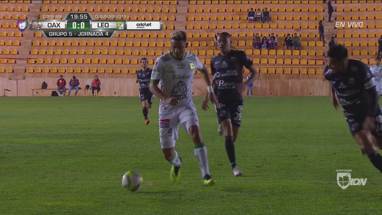 Walter González recorrió la franja derecha del campo, ingresó al área y sacó el disparo rastrero que fue controlado por el arquero de Alebrijes Isaac Robles.