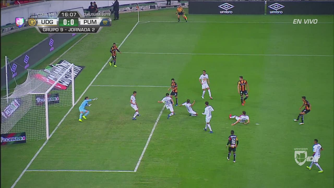 Daniel García, disparó tras una jugada dentro del área, la defensa de Pumas sacó a duras penas al tiro de esquina.