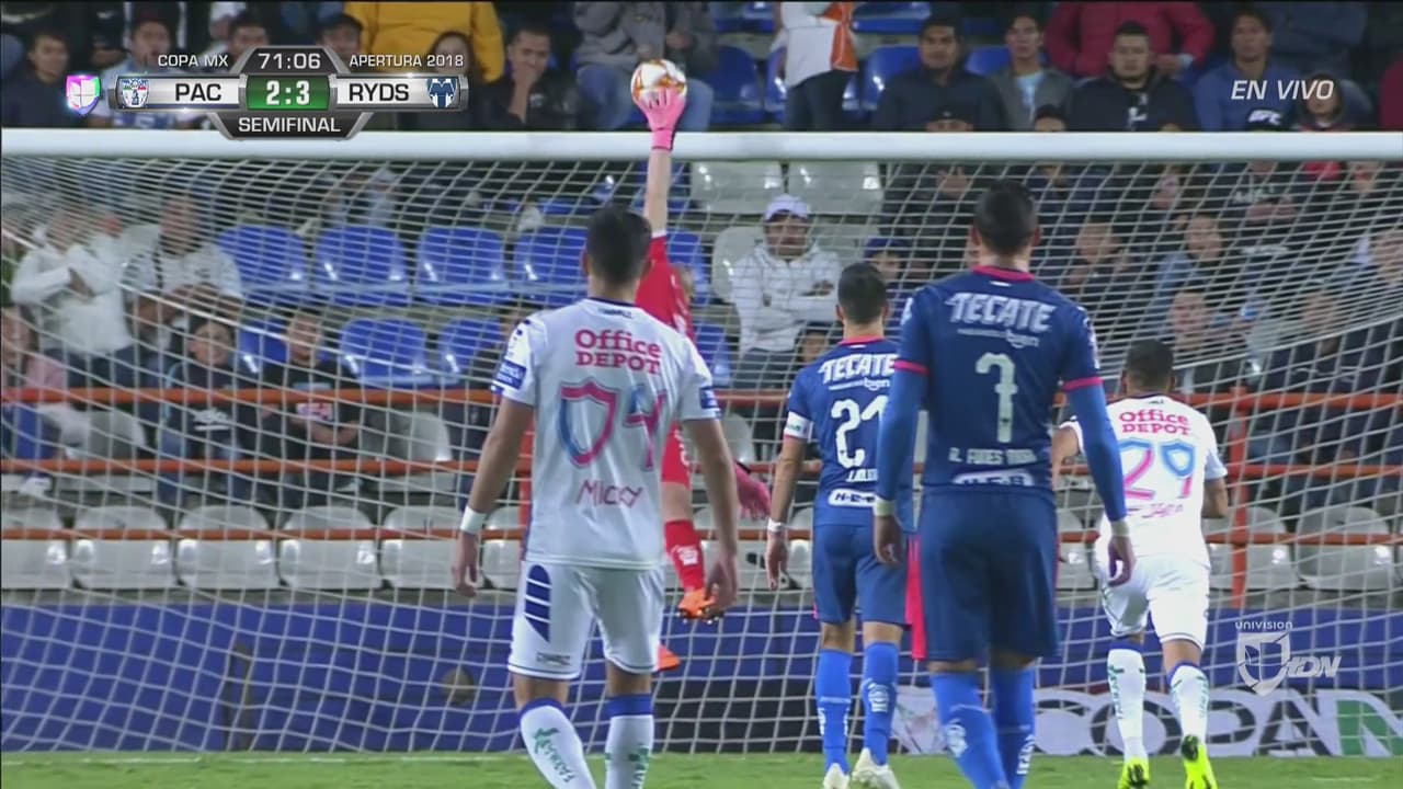 El recién ingresado al juego ‘Chaco’ Giménez intentó de media distancia y el arquero de Monterrey desvió al tiro de esquina con espectacular volada.