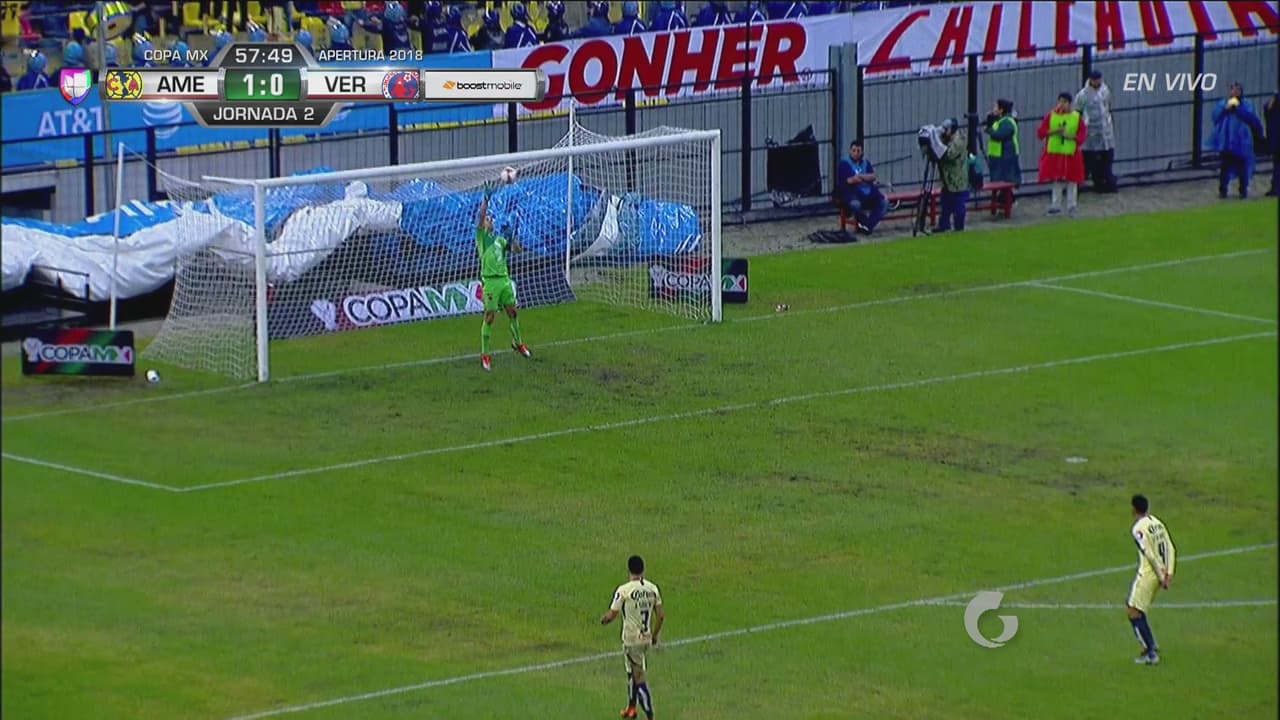 Los de Veracruz acechan a las Águilas, pero en el fondo se encuentra un imbatible Marche que rechaza todo peligro que llega a su meta.
