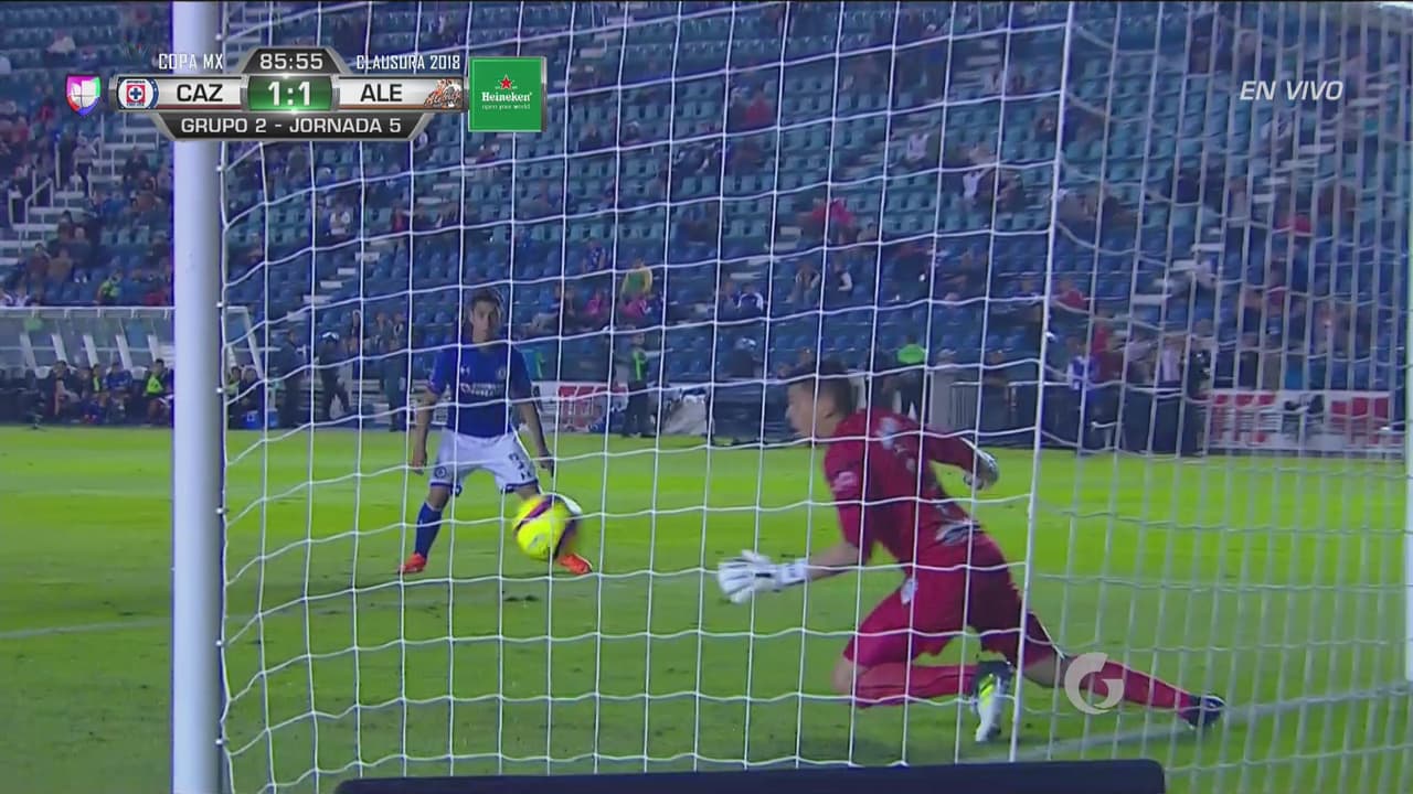 El jugador de Cruz Azul cobró un tiro libre muy cerca del área, pero el arquero Marín esta vez sí pudo atajar el disparo.