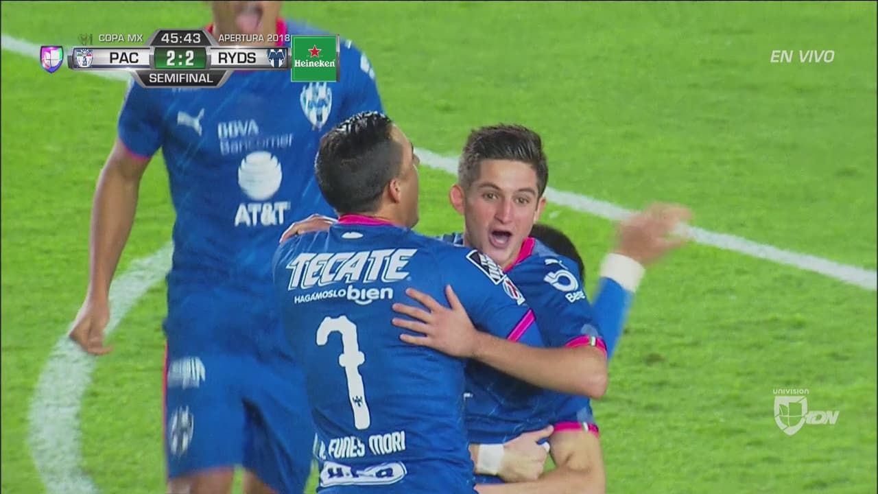 Aunque Pachuca terminó con todo a favor por haber anotado en el cierre de la primera parte y tener un hombre más en la cancha, Rayados tomaron ventaja en el inicio de la segunda parte con un golpe de zurda del joven Daniel Lajud.